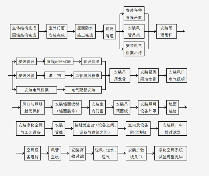 3、凈化工程設計應為施工安裝、維護管理、測試和安全運行創(chuàng)造必要的條件。