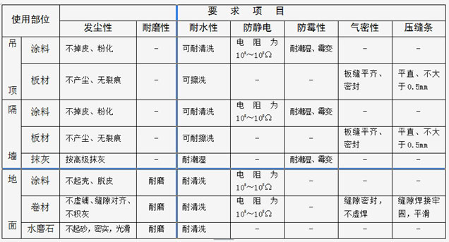 潔凈室裝飾表面質量要求一覽表