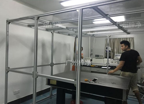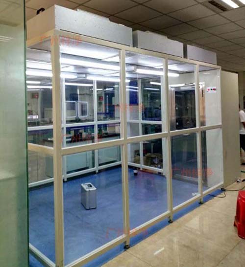千級潔凈棚產品既可懸掛,又可地面支撐,結構緊湊,使用方便。可以單個使用,也可多個連接組成帶狀潔凈區域。千級潔凈棚(簡易無塵室)是一種可提供局部高潔凈環境的空氣凈化設備。千級潔凈棚(簡易無塵室)(CLEAN BOOTH)是為最快速方便建立的一座簡易潔凈室,潔凈棚具備多種潔凈等級及空間搭配可以根據使用需求設計制作,因此其簡便運用彈性大安裝容易且施工期短以及可移性為其主要特點,潔凈棚同時可針對在一般等級的潔凈室中局部地區需要高潔凈度的地方做局部增設以降低成本。千級潔凈棚制作現場圖千級潔凈棚(1000級潔凈棚)采用工業鋁材(或不銹鋼方通、鐵方通噴塑)作為框架,風機濾網機組(FFU)送風,四周懸掛防靜電垂簾(或鋼化玻璃),其內部凈化級別可達到100級-10000級。適用于操作區內局部凈化級別要求高的區域。
