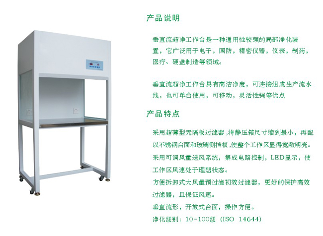 垂直流超凈工作臺性能特點: