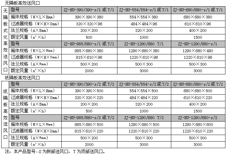 外形尺寸:554×554×540;680×680×520;985×680×470;1290×680×520;1210×600×250。液槽式高效送風口高效過濾器效率99.95%@MPPS。