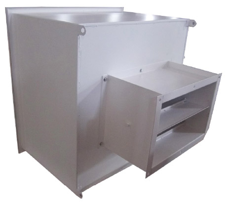 箱體頂部進風口中裝有蝶形風閥,且在箱體底部的側面用一個旋轉的閥門調節裝置控制,以調節進入潔凈室內的風量。